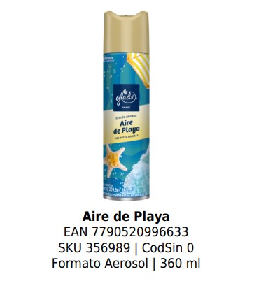 Aire de Playa EAN 7790520996633 SKU 356989 | CodSin 0 Formato Aerosol | 360 ml