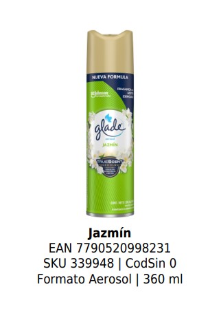 Jazmín EAN 7790520998231 SKU 339948 | CodSin 0 Formato Aerosol | 360 ml