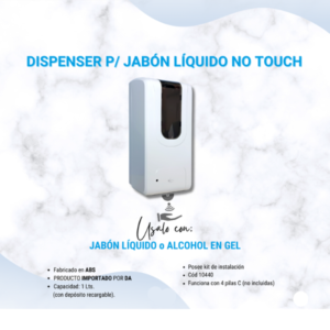 hasta 400mts. Dispenser jabón, apto para el uso de jabón líquido o alcohol en gel.
